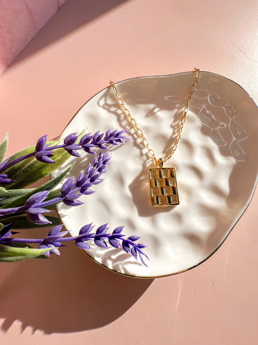 Checkered Print Necklace | 18k triple gold plated | Spring Vintage Inspired CollectionRegular price $20.00 USDRegular priceUnit price per-