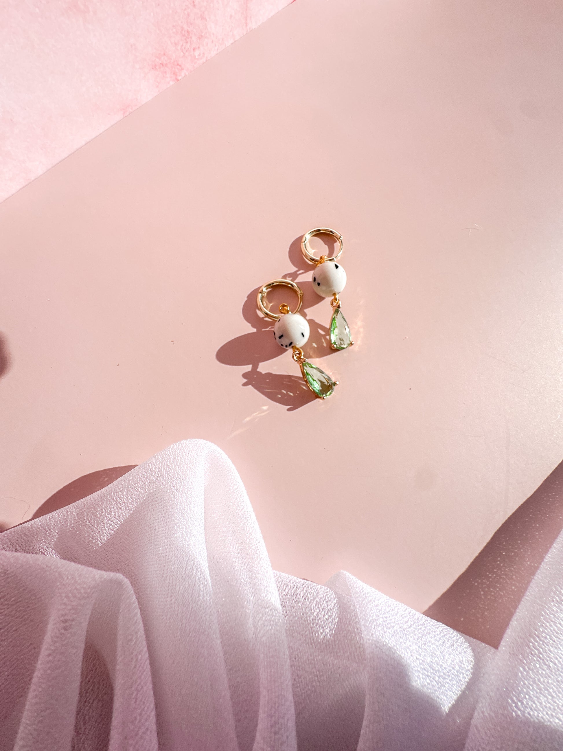 Green Charm with Dalmation Jade Beads Charm Earrings | Real Gold Plated | Spring Vintage Inspired Collection